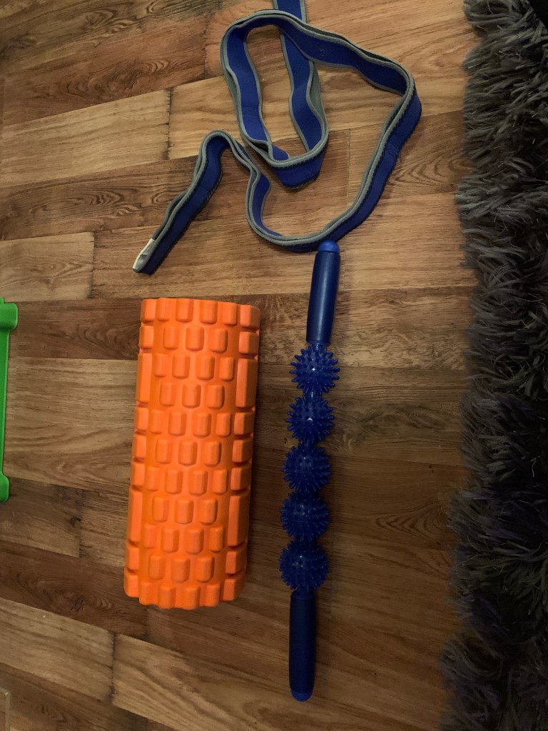 Other tools of my tread ☝️ are a foam roller, a spiky ball roller, and a stretch band.