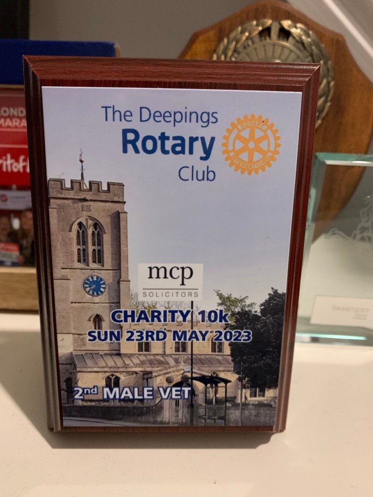 Trophy/plaque for coming 2nd Vet to cross the line..