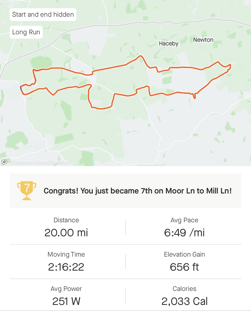 Im definitely enjoying running around the new routes of Grantham, a great mixture of town, country lanes, trail, small villages. The weather is very hot and miss and the moment, but it’s good cause with the race being in October the conditions are not gonna be perfect, so it’s getting my body use to all kinda conditions 😆 basically been soaked nearly everytime I’ve done my marathon efforts 😆
