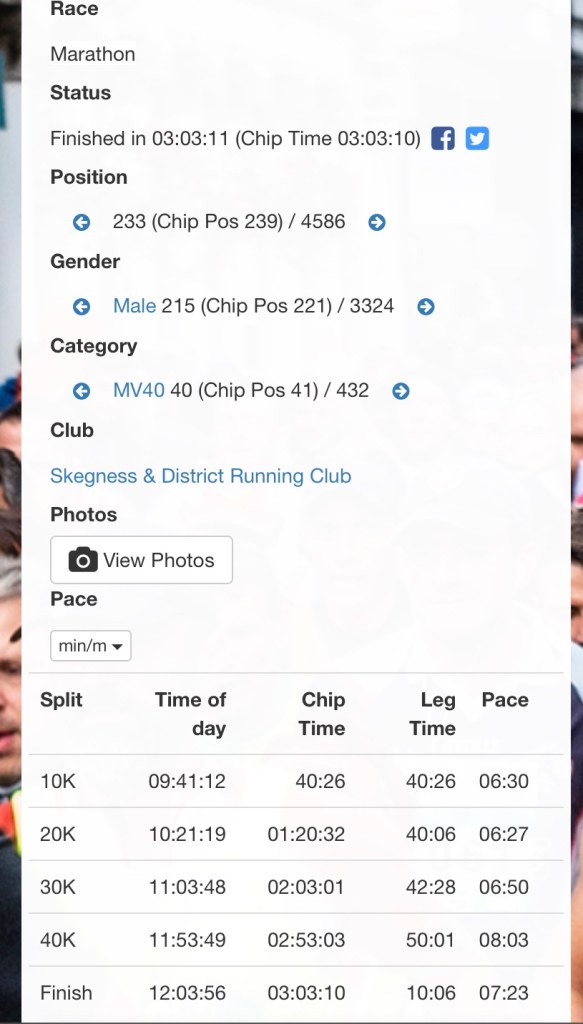 Crossed the line in 3:03:10. Not what I wanted on the day but all I had on the day, so I’ve gotta be proud of that….