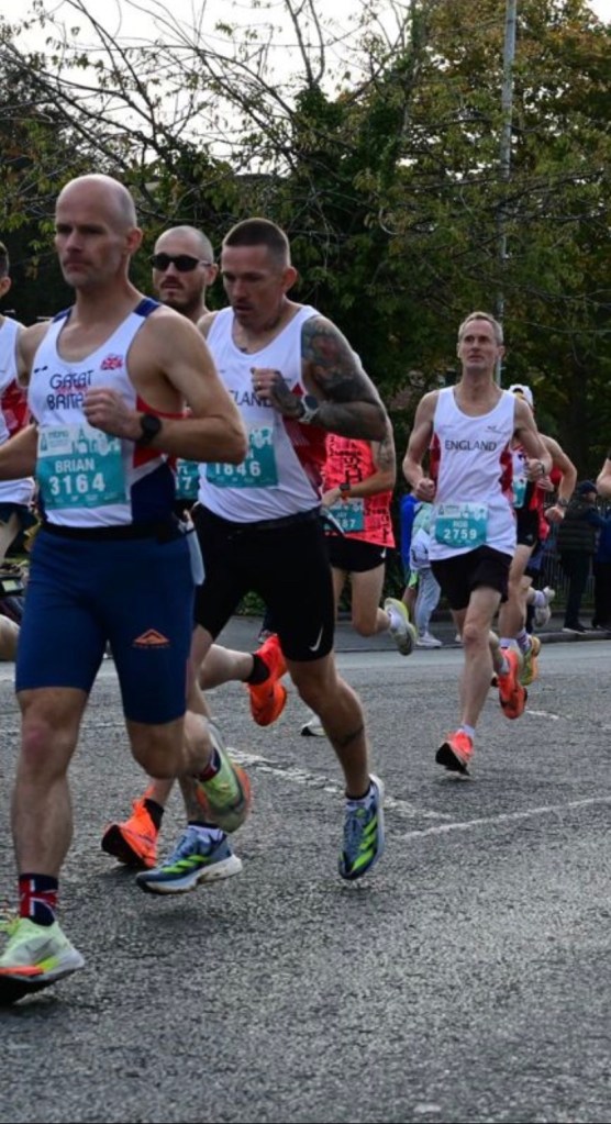 Training, now I’m not gonna go into to much depth with my training as it’s all on Strava to see, I’ll try and link to it ( if I remember 😂) but I maxed out volume wise at about 103 miles for the week, longest run 23 miles, I did one long run per week which was broken down towards Marathon pace, and a mid week long run which i maxed a 14 miles, and one session a week, rest of the volume was easy / recovery runs .. looking back my training and I’m happy with the work I put into this block, through some tough conditions to, I remember the summer being pretty challenging, heavy rain for most of my earlier long runs, and then blistering hot towards the later ! 🥵 but I got it done and faced the elements.